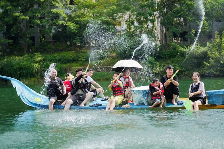 两船皆以生态环保为核,船体与江水共生,游客的每一次驻足、每一声笑语,皆成为楠溪江人文与自然对话的注脚。在这里,艺术不再是遥不可及的展品,而是触手可及的生活——或静思、或嬉戏,让身心随江水舒展,于流动的风景中寻得“人生忧愁至此无”的豁然。舟游世界,以艺术重构水上时光,邀您共赴一场跨越时空的江南幻梦。