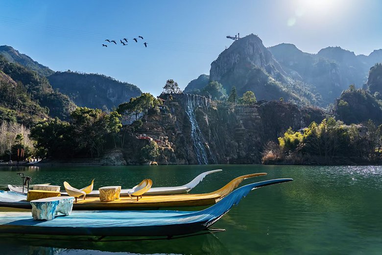 在永嘉书院百米碇步的碧波之上,“舟游世界”以两种全球首创的雕塑艺术船,将楠溪江的山水画卷升华为流动的诗意。国际艺术家博浩先生以“凤凰渡”传说为灵感,以凤凰羽毛与竹叶为形,打造出“凤羽”与“竹叶舟”两件水上艺术杰作,让游客化身画中人,演绎“舟行碧波上,人在画中游”的东方美学意境。